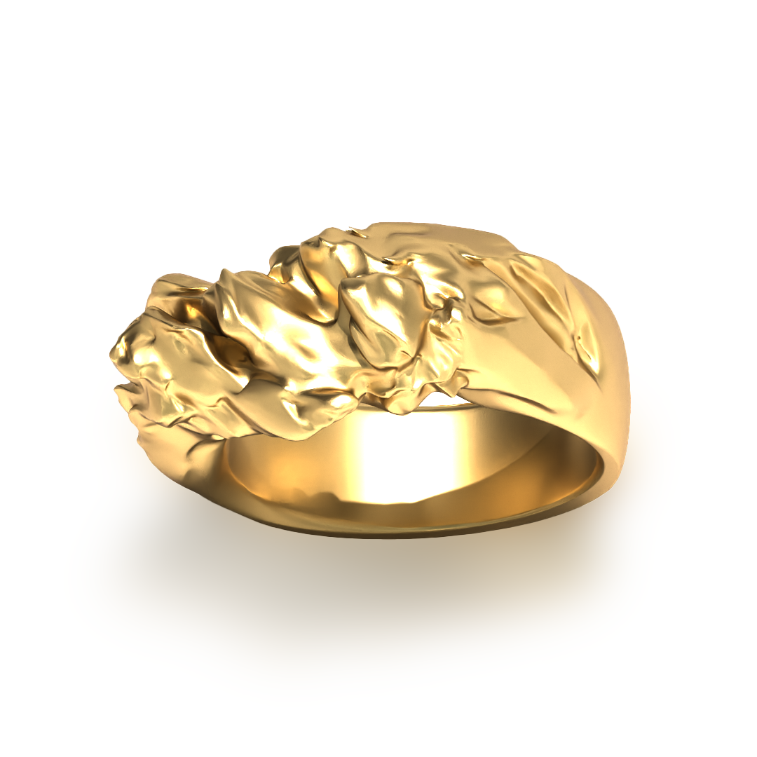 Manor House Ring in 20k Gold by Tropaêz, limited edition with vineyard motifs and London Blue Topaz--profile view.
